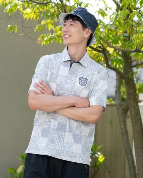 パッチワークモチーフを施したデザインポロシャツ。