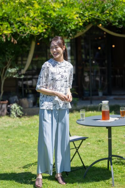 接触冷感素材で、夏の名残の残暑コーデでも、軽やかで爽やかな印象に◎