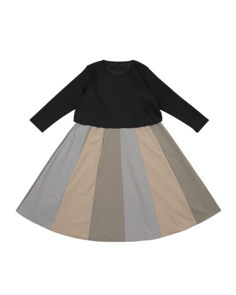 そんな悩みを解決してくれるのがフェイクレイヤードワンピースです。1枚でトップスとワンピースを重ねたようなデザインだから、忙しい朝でも簡単に、秋らしいコーデが完成します。