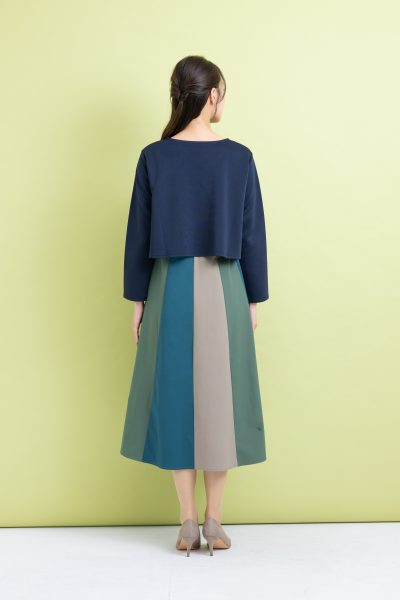 ウエスト部分で切り替えられているので、スッキリ見えが叶います!