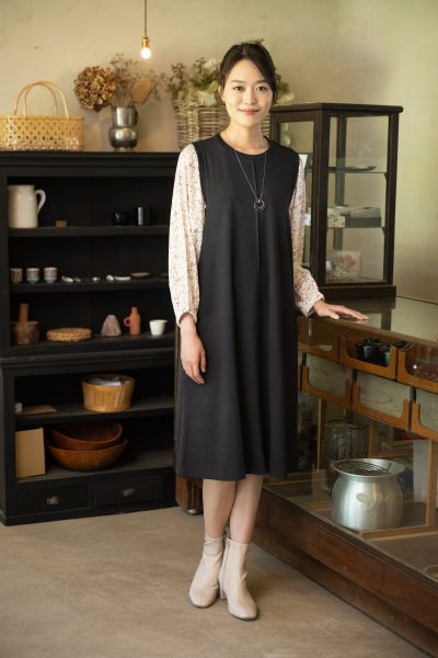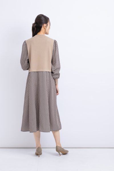 こちらは柄物ワンピースにベストを重ねたようなデザイン♪