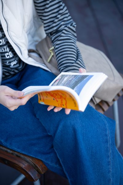 落ち着いた図書館で過ごす午後、さっと羽織るだけで