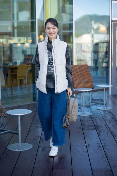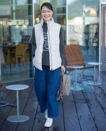 軽やかで上品な質感のホワイトベストは、季節の変わり目にぴったりのアイテム。