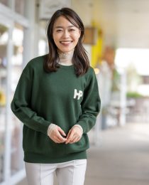 カーキのインナー、実は左胸にHPロゴが!凹凸感のあるサガラ刺しゅうで、価値あるデザインです。