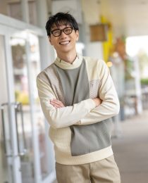 インナーには、前身頃にニット素材、後身頃と袖にカットソー素材を使用したハイブリッドトレーナーを!アウターを脱いでもオシャレな装いです♪