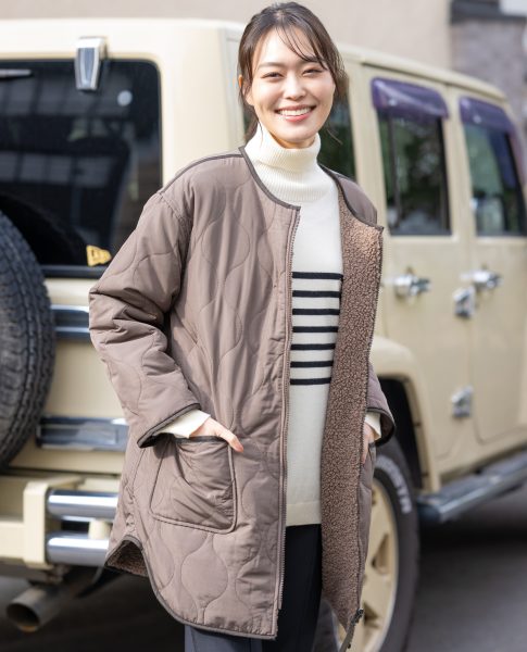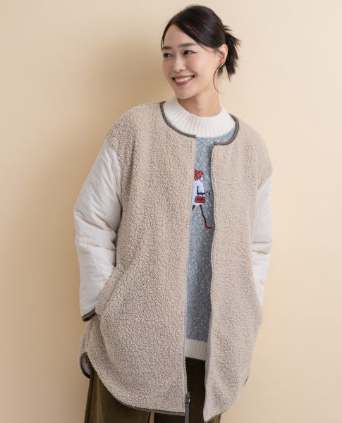 中わた×ボアでしっかり防寒しながらも、着ぶくれしにくいシルエットも嬉しいポイントです。