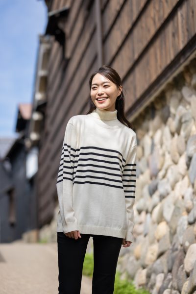 オフ×オフ+ボーダーで、やさしくて冬らしい“抜け感”のあるコーデに❄
