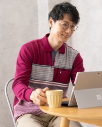 ふんわりとした微起毛素材を使用した長袖ポロシャツ。