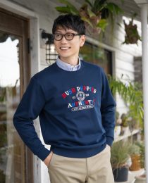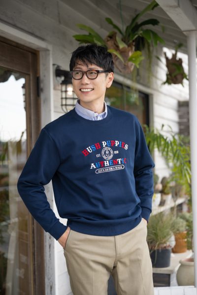 トレーナーのインナーにシャツを重ねると、しっかり見えして、カジュアルの中にきちん感がプラスされます♪