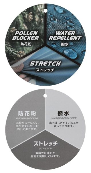 「防花粉」「撥水」「ストレッチ」など、嬉しい機能を盛り込みました!!